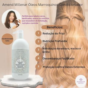 Somos a butique da beleza Uma empresa especializada no comércio de cosméticos e semijoias. Estamos sempre entre os melhores vendedores. Nosso compromisso é com você Seu conforto e segurança são nossos propósitos Servir e ajudar são nossos deveres Condicionador amend óleos marroquinos Se seus cabelos estão secos, ásperos e sem brilho, o condicionador amend óleos marroquinos é a solução ideal para transformar a textura e a aparência dos fios. Enriquecido com óleos preciosos de argan e amêndoas, ele proporciona nutrição intensa enquanto desembaraça e hidrata profundamente, deixando seus cabelos macios, disciplinados e radiantes. Indicado para qual tipo de cabelo Perfeito para cabelos secos, danificados, opacos ou com frizz, que necessitam de hidratação, nutrição e controle. Benefícios Nutrição profunda: os óleos marroquinos ricos em ácidos graxos nutrem profundamente os fios. Hidratação duradoura: recupera a umidade essencial dos cabelos, evitando o ressecamento. Redução do frizz: ajuda a selar as cutículas, deixando os fios mais alinhados e disciplinados. Desembaraço facilitado: deixa os cabelos fáceis de pentear, reduzindo a quebra. Maciez e brilho: proporciona uma textura suave e um brilho intenso desde a primeira aplicação. Proteção contra danos externos: cria uma camada protetora contra os efeitos do calor, poluição e ferramentas térmicas. Resultados Cabelos nutridos, macios, hidratados e com brilho extraordinário. Os fios ficam mais alinhados, livres de frizz e fáceis de desembaraçar. Modo de uso Após lavar os cabelos com o shampoo amend óleos marroquinos, aplique o condicionador no comprimento e pontas. Massageie suavemente e deixe agir por 1 a 2 minutos. Enxágue completamente. Dica da butique da beleza Para um tratamento ainda mais poderoso, use em conjunto com a máscara amend óleos marroquinos e garanta cabelos ainda mais nutridos e saudáveis Dúvidas frequentes Posso usar todos os dias Sim ele é ideal para uso diário, especialmente em cabelos que precisam de hidratação constante. Ajuda a controlar o frizz Com certeza o condicionador sela as cutículas, ajudando a reduzir o frizz e deixando os cabelos mais alinhados. Funciona em cabelos oleosos Embora seja mais indicado para cabelos secos, pode ser em cabelos mistos, aplicando apenas no comprimento e nas pontas. Pesa nos fios finos Não sua fórmula é leve, proporcionando hidratação sem comprometer o volume natural. Preciso usar com o shampoo da mesma linha O uso combinado com o shampoo e a máscara da linha potencializa os resultados, garantindo fios ainda mais saudáveis e nutridos. Se tiver mais dúvidas, estamos aqui para ajudar você a alcançar cabelos incríveis e cheios de vida