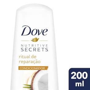 "Dove Nutritive Secrets é uma linha de produtos inspirada nos rituais de cuidados com os cabelos praticados pelas mulheres ao redor do mundo, combinando a nutrição de Dove com o poder da natureza O Condicionador Dove Ritual de Reparação 400 ML foi inspirada nos Rituais da Índia de tratar os cabelos danificados com óleo de coco e cúrcuma. A linha Dove Ritual de Reparação deixa seus fios muito mais saudáveis e traz de volta a beleza e força aos seus cabelos.
