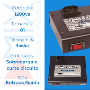 ESPECIFICAÇÕES: Potência máxima: 1200VA (840W) Tensão de entrada: 120V Tensão de saída: 120V 1 Tomada 10A Gabinete metálico