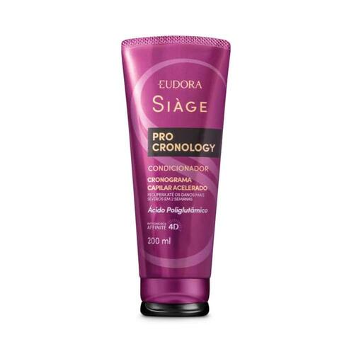 O Condicionador Eudora Siàge Pro Cronology de 200ml oferece uma ação ultra condicionante, selando as cutículas e mantendo o tratamento nos fios, resultando em cabelos mais fortes e maleáveis. Siàge Pro Cronology apresenta um cronograma capilar acelerado que pode recuperar danos de todos os tipos em apenas 2 semanas. Essa linha interrompe a degradação e o desgaste dos fios, restaurando danos severos em todos os tipos de cabelo.