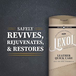 Você limpa e condiciona seu couro a cada 6 meses, mas sujeira, secura, luz solar e umidade nunca deixam de lado. Mantenha seus investimentos em couro a cada 2 meses entre limpeza e condicionamento com os Lenços rápidos de couro lexol. Cada lenço aplica nossa fórmula all-in-one. O limpador ultra-suave — livre de aditivos desnecessários — ajuda a proteger contra danos e descoloração. E o condicionador contém óleos especialmente formulados que mantêm a flexibilidade do couro e a sensação flexível. Esta solução simples é ótima para o interior do seu carro, pasta, bolsa, sapatos, jaqueta, móveis de couro e equipamentos esportivos. Rejuvenesça seu couro e preserve sua beleza e durabilidade com os Lenços rápidos de couro lexol. Lexol, confiável desde 1933.