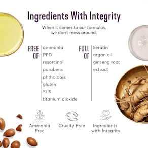 - Nutre e protege o cabelo: formulado com queratina e quinoa apaixonados pelo cabelo para fortalecer e reparar cabelos danificados, néctar das flores e aloe para reabastecer a barreira lipídica protetora para brilho duradouro, e extrato de raiz de ginseng para melhorar a força do cabelo, suavizar o cabelo e aliviar pontas duplas, enquanto o lupine azul doce proporciona proteção UV resistente ao desbotamento e trava a cor.