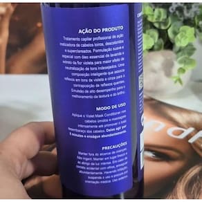 Condicionador Matiz P21 Violet Mask Conditioner 480g NOVA FÓRMULA Tratamento capilar de ação matizadora de cabelos loiros, descoloridos e super clareados. Formulação suave e especial com óleo essencial de lavanda e extrato da flor violeta para maior efeito de neutralização de tons indesejados. Uma composição inteligente que associa reflexos em tons de violeta e cinza para contraposição de reflexos quentes. Emulsão de alto desempenho para o melhoramento da textura e do brilho. MODO DE USO Aplique o Violet Mask Conditioner nos cabelos úmidos e massageie intensamente até promover o total desembaraço dos cabelos. Deixe agir por 8 minutos e enxágue abundantemente. INFORMAÇÕES IMPORTANTES Não testado em animais. Dermatologicamente testado. Matização e contraste de cabelos clareados e descoloridos. Marca: Não Informado