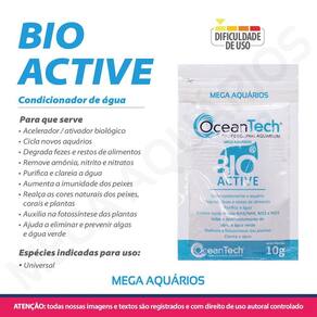 Bio Active é um condicionador multifunção que todo o aquarista precisa ter para manter os parâmetros do aquários estáveis, é um produto biológico selecionado a partir de micróbios benéficos, rico em bactérias nitrificantes, bactérias de nitrificantes, nitro bactérias aeróbicas e anaeróbicas, bactérias lácticas, micro enzimas aquáticas, bactérias fotossintéticas. No produto, inclui também ingredientes ativos como bio-enzima, ácido orgânico, aminoácidos, oligossacarídeos, bio-peptídeo, elementos traços, vitaminas e carotenoides que aumentam a imunidade e melhoram a coloração dos peixes, corais e plantas aquáticas.