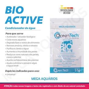 Bio Active é um condicionador multifunção que todo o aquarista precisa ter para manter os parâmetros do aquários estáveis, é um produto biológico selecionado a partir de micróbios benéficos, rico em bactérias nitrificantes, bactérias de nitrificantes, nitro bactérias aeróbicas e anaeróbicas, bactérias lácticas, micro enzimas aquáticas, bactérias fotossintéticas. No produto, inclui também ingredientes ativos como bio-enzima, ácido orgânico, aminoácidos, oligossacarídeos, bio-peptídeo, elementos traços, vitaminas e carotenoides que aumentam a imunidade e melhoram a coloração dos peixes, corais e plantas aquáticas.