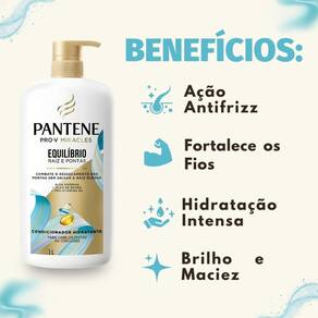 Condicionador Pantene Pro-V Equilíbrio Raiz e Pontas 1L Descubra o segredo para cabelos perfeitamente equilibrados com o Condicionador Pantene Pro-V Equilíbrio Raiz e Pontas 1L. Desenvolvido para atender às necessidades de cabelos mistos, este condicionador hidratante da coleção Equilíbrio Raiz e Pontas, enriquecido com óleo de baobá e algas marinhas, atua diretamente para resolver o desafio das pontas ressecadas e espigadas, enquanto mantém a leveza da raiz. Proporciona uma hidratação profunda, restaurando a saúde e o brilho dos seus fios para um aspecto visivelmente saudável e revitalizado.