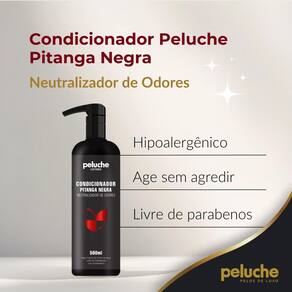 O condicionador à base de pitanga negra da peluche cosméticos pet foi desenvolvido para condicionar e cuidar do pelo do seu pet, mantendo as características naturais dos pelos e devolvendo seu brilho natural. Sua fórmula balanceada com toque de pitanga negra proporciona aos pelos maciez e brilho após um banho seguro e eficaz para o pet.