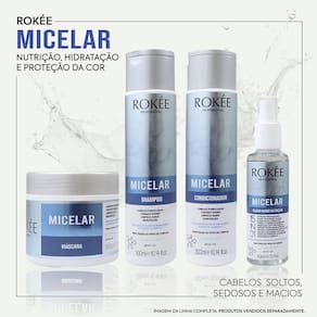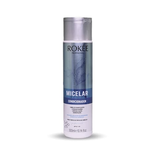 OCondicionador Micelar ROKÉE, possui em sua Fórmula Extrato de Calêndula, Blend de Aminoácidos e Silicones nobre, que combinam com Tecnologia Micelar garantem alto poder de nutrição purificada, hidratação, proteção térmica e da cor, deixando os cabelos sedosos e macios.