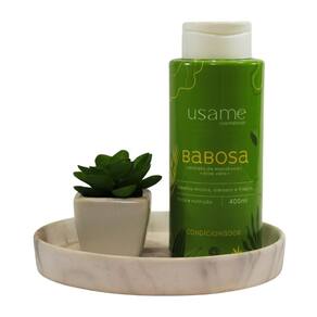 O Condicionador BABOSA contém em sua fórmula Extrato de Mandioca e o poderoso Aloe Vera (Babosa) que, combinados com as vitaminas A, C, Cálcio e Fósforo, favorecem a nutrição dos fios, emoliência e hidratação.