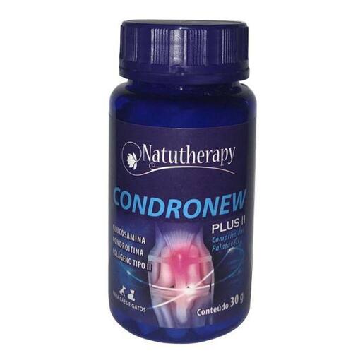 Suplemento Vitamínico Condronew Plus II é indicado para auxiliar os tratamentos de artropatias não infecciosas, como, artrites, artroses, osteoartroses, hidroartroses, artropatias degenerativas, displasias coxo-femorais, espondiloses, espondiloses anquilosantes, condropatias, sinovites; patologias tendíneas; osteodistrofias e condrodistrofias; pós-operatório de cirurgias articulares; coadjuvante em casos de fraturas, além de atuar também na profilaxia de doenças osteoarticulares e condro-proteção de animais submetidos a grandes esforços.Frasco contendo 60 comprimidosDosagensAnimais até 10 kg: 1/2 comprimido de 1200mg uma vez ao diaAnimais de 11 à 20 kg: 1 comprimido de 1200mg uma vez ao diaAnimais de 21 à 30 kg: 1. 1/2 comprimido de 1200mg uma vez ao diaAnimais acima de 40 kg: 2 comprimidos de 1200mg uma vez ao diaComposição básicaColágeno, Sulfato de Condroitina A, Sulfato de Glucosamina,Extrato de Yucca, Sulfato de Manganês, Vitamina C, Excipiente q.S.P.Níveis de garantia por comprimido de 1.200mg:Colágeno .................................................................. 5,555 mgCobre ........................................................................ 5,000 mgZinco ....................................................................... 14,000 mgCondroitina ........................................................... 200,000 mgGlucosamina .......................................................... 300,00 mgManganês ................................................................. 4,000 mgVitamina A ........................................................... 1.500,000 UIVitamina E .................................................................. 3,000 UIConsulte Veterinário