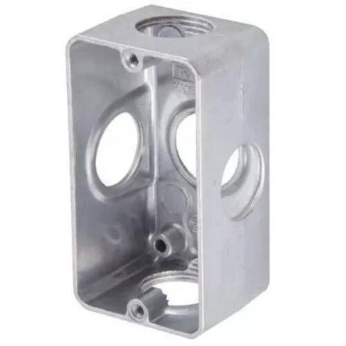 Produzido em alumínio, possui elevada resistência mecânica e a corrosão, sendo ideal para instalações elétricas aparentes - residenciais, comerciais e industriais - proporcionando uma solução, quando não se tem a intenção de quebrar a parede para embutir a fiação. Indicado para projetos que preveem expansão futura, possui saídas para cinco diferentes direções. Se uma das saídas não for utilizada, pode ser tapada para posterior expansão. A aplicação do Kit de Vedações possibilita, de forma simples e eficiente, obter o índice de proteção IP 54 - ideal para instalações externas. O Kit de Vedações e tampões de saída, são oferecidos separadamente. - Caixa múltipla em alumínio tipo x de 3/4 Com Rosca BSP. - Produzida em alumínio SAE 306 de elevada resistência mecânica e a corrosão, acabamento sem pintura. - É fornecida sem a tampa e sem tampões plásticos. - Acompanha 2 parafusos para instalação da tampa.