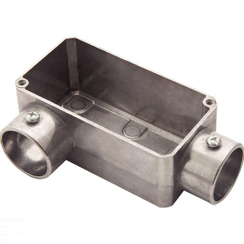 Produzido em alumínio, possui elevada resistência mecânica e a corrosão, sendo imprescindível para instalações eletricas aparentes - residenciais, comerciais e industriais - proporcionando uma solução, quando não se tem a intenção de quebrar a parede para embutir a fiação. A aplicação do Kit de Vedações (oferecido separadamente) possibilita, de forma simples e eficiente, obter o índice de proteção IP 54 - ideal para instalações externas. Orientações . Características Gerais EAN13 7891435029987 DUN14 17891435029984 NCM 7609.00.00 Peso Líquido 0,1780 kg. Peso Bruto 0,1810 kg. Metragem 0,000559 m³. Dimensões Embalagem (Compr. X Larg. X Alt.) 140x 85x 47 mm. Dimensões Produto (Compr. X Larg. X Alt.) 140x 85x 47 mm. Cor 1 A9A9A9 Hexa Dimensão Extra A 116,0 mm. Dimensão Extra B 60,0 mm. Dimensão Extra C 47,0 mm. Dimensão Extra D 24,0 mm. Observações A instalação e segurança: É importante que o produto seja instalado por profissional habilitado. Antes de instalar, desligue a energia elétrica.