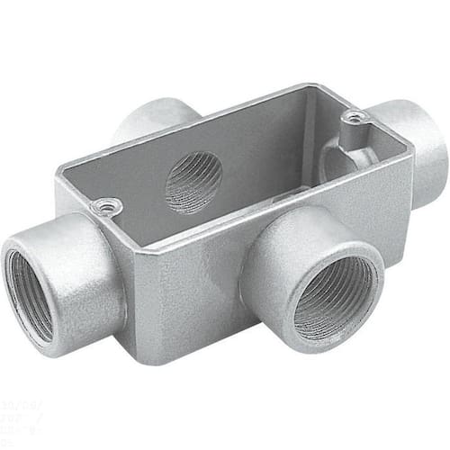 Produzido em alumínio, possui elevada resistência mecânica e a corrosão, sendo imprescindível para instalações eletricas aparentes - residenciais, comerciais e industriais - proporcionando uma solução, quando não se tem a intenção de quebrar a parede para embutir a fiação. A aplicação do Kit de Vedações (oferecido separadamente) possibilita, de forma simples e eficiente, obter o índice de proteção IP 54 - ideal para instalações externas. Orientações . Características Gerais EAN13 7891435047530 DUN14 17891435047537 NCM 7609.00.00 Peso Líquido 0,8000 kg. Peso Bruto 0,8125 kg. Metragem 0,003135 m³. Dimensões Embalagem (Compr. X Larg. X Alt.) 220x 150x 95 mm. Dimensões Produto (Compr. X Larg. X Alt.) 220x 149x 94 mm. Cor 1 A9A9A9 Hexa Observações A instalação e segurança: É importante que o produto seja instalado por profissional habilitado. Antes de instalar, desligue a energia elétrica.