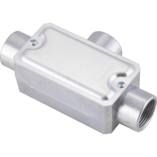 Condulete Fixo 3/4" Tipo "t" - Com Tampa / Rosca Bsp / Sem Pintura Condulete fixo 3/4 tipo T - com tampa / rosca BSP / sem pintura Produzido em alumínio, possui elevada resistência mecânica e a corrosão, sendo imprescindível para instalações eletricas aparentes - residenciais, comerciais e industriais - proporcionando uma solução, quando não se tem a intenção de quebrar a parede para embutir a fiação. A tampa em alumínio estampado.