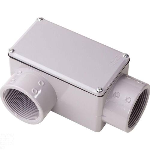 Os conduletes com rosca NPT da Tramontina são ideais para instalações elétricas aparentes - residenciais, comerciais e industriais - em ambientes, internos ou externos, onde possa existir líquidos, poeiras, gases e vapores não inflamáveis. Acompanha junta de vedação IP54 e possui rosca no formato cônico, garantindo perfeita vedação. Produzido em alumínio, proporciona elevada resistência mecânica e a corrosão. Orientações Pintura eletrostática a pó padrão poliéster. Cor cinza Munsell N 6.5. Características Gerais EAN13 7891435007404 DUN14 17891435007401 NCM 7609.00.00 Peso Líquido 4,3500 kg. Peso Bruto 5,1200 kg. Metragem 0,010080 m³. Dimensões Embalagem (Compr. X Larg. X Alt.) 300x 210x 160 mm. Dimensões Produto (Compr. X Larg. X Alt.) 292x 197x 157 mm. Cor 1 C0C0C0 Hexa Observações A instalação e segurança: É importante que o produto seja instalado por profissional habilitado. Antes de instalar, desligue a energia elétrica.
