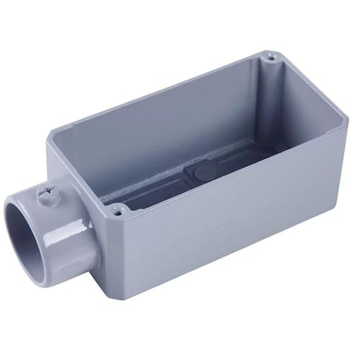 CONDULETE FIXO TIPO E 1" SEM ROSCA E TAMPA TRAMONTINAProduzido em alumínio, possui elevada resistência mecânica e a corrosão, sendo imprescindível para instalações elétricas aparentes - residenciais, comerciais e industriais - proporcionando uma solução, quando não se tem a intenção de quebrar a parede para embutir a fiação.Material: AluminioTipo de conecxão: Tipo ETipo da rosca: Sem roscaIndice de proteção: IP 54Polegada: 1"Tampa: Sem tampaPintura: Sem pinturaMarca: TramontinaReferencia: 56102313 Codigo: 80335*IMAGEM ILUSTRATIVA*