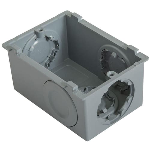 Condulete Plastibox L Condulete Plastibox L Produzido em termoplástico na cor cinza escuro, condulete único para 3 bitolas: 1/2, 3/4 e 1. Maior espaço interno: 226 cm. O condulete é fornecido com 4 tampões. Quando destacada a parte central dos tampões, funcionam como sistema de travamento dos acessórios e proteção do fio condutor. Possibilidade de compor conduletes duplos e triplos.