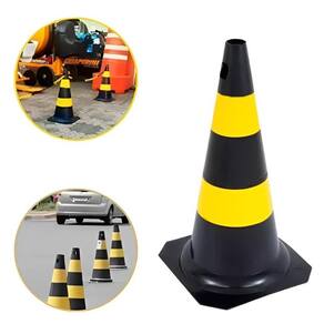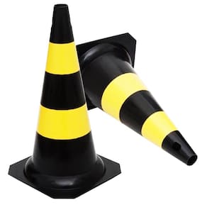 Cones pretos com as faixas amarelas são mais utilizados para sinalizações fixas. Ou seja, para