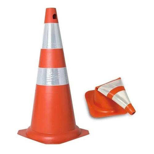 Cone Emborrachado 75cm Laranja/Branco Kteli Viária injetado em PVC flexível na cor laranja com 75 cm de altura duas faixas refletivas branca de 300 candelas, possui 2 aberturas para utilização de fita zebrada ou corrente plástico. Especificações: Medidas: 75 Cm Cor: Laranja/branco Marca: Plastcor Ean: 7898494152687