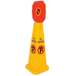 Este cone de trânsito amarelo vibrante apresenta um aviso de "Proibido Estacionar" e um símbolo claro de proibido estacionar para máxima visibilidade.