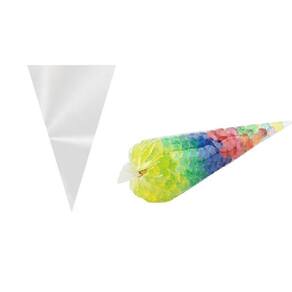 o cone incolor são saquinhos em formato de cone, transparentes, ideal para personalizar e embrulhar cones recheados, balinhas, docinhos, pequenos bombons, mini trufas entre outras delícias;
