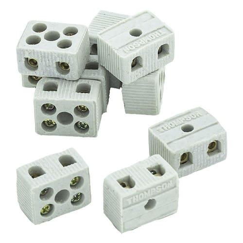 Características Principais: Cor: Branco Marca: Thompson Material: Cerâmica Função: Realizar conexões elétricas seguras e confiáveis, oferecendo boa resistência térmica e isolamento elétrico. Conexões seguras em equipamentos elétricos residenciais, comerciais e industriais