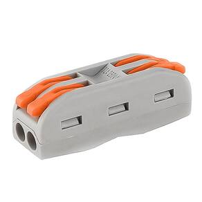 Modelo: Conector 2 Vias Tipo: Emenda linear de conexão rápida Fixação: Manual, sem uso de ferramentas Aplicação: Instalações elétricas de baixa tensão Material: Polímero isolante com contatos metálicos condutivos Compatibilidade: Condutores rígidos e flexíveis Condutores suportados: 0.2 .2,5–4,0 mm² Tensão máxima: 250 V Corrente máxima: 32 A Quantidade: 50 unidades