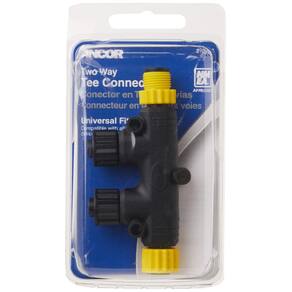 - O conector em T de 2 vias com porcas amarelas se conecta às camisetas Ancor e aos cabos de backbone correspondentes, criando uma instalação de rede simplificada e codificada por cores