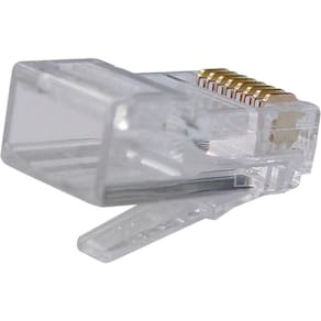 Caracterstica construtiva: Cor: transparente; Tipo de conector: rj-45; Tipo de cabo: u/utp cat.5e; Dimetro de condutor: 26 a 22 awg; Material de contato eltrico: 8 vias em bronze fosforoso com 50in (1,27 m) de ouro e 100 in (2,54m) de nquel; Material do corpo do produto: termoplstico no propagante a chama Ul 94v-0; Padro de montagem: t568a e t568b.