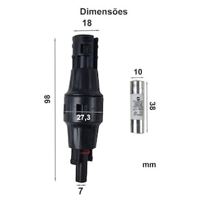 - Proteção contra sobrecargas e curto-circuitos: O fusível integrado age rapidamente para interromper correntes excessivas, evitando danos aos painéis solares e outros componentes do sistema. - Maior segurança elétrica: Reduz o risco de superaquecimento e incêndios, garantindo um funcionamento seguro e confiável da instalação. - Facilidade na manutenção: Caso ocorra uma falha, o fusível pode ser substituído de forma rápida e simples, sem necessidade de desmontar todo o sistema. - Melhora na eficiência do sistema: Evita quedas de desempenho causadas por falhas elétricas, garantindo uma geração de energia mais estável e eficiente. - Conexão padronizada e segura: Projetado para se encaixar perfeitamente em sistemas solares com conectores MC4, mantendo a integridade das conexões elétricas.