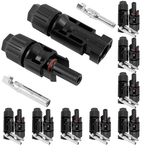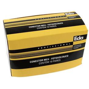 Conector MC4 para Sistema Fotovoltaico Painel Solar Kit 10 Pares Macho Fêmea - Marca: Eda - Referência: 0OC - Kit com 10 Pares - Conector MC4 - Para sistema fotovoltaico - Conector MC4 com rosca M12 para montagem de quadros Fotovoltaicos par - Específico para string box, quadros, painel elétrico, caixas herméticas, etc - Possui vedação própria isolando os circuitos internos de intemperes dando mais profissionalismo e durabilidade a instalação - Tensão máxima: 1000v - Corrente máxima: 30A - Grau de proteção: IP67 - Material de isolamento: pc/pa - Material do contato: cobre, banhado a prata - Temperatura de funcionamento: -40 a 90ºc - Classe de segurança: classe II - Chama classe: UL94-V0 - Resistência de contato: 5 miliohms - Apropriado para cabos 2,5mm, 4mm, 6mm 14AWG 10AWG - : 90 dias Marca: Não Informado Ean: 7895315019662