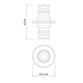 Água é fundamental para a vida de suas plantas. Conector para 2 Engate Rápido Tramontina permite com que você conecte duas mangueiras, facilitando o alcance da água em todos os cantos do seu jardim, mantendo-o sempre irrigado. Orientações - Produto fabricado com matéria-prima de alta qualidade proporcionando uma irrigação precisa e confiável.- Através de engates rápidos, permite a conexão de 2 mangueiras para estender o sistema de irrigação. Observações - O adaptador é usado para unir duas mangueiras através de engates rápidos de 1/2", 5/8" e 3/4.- Água: pode faltar. Não desperdice.- Para descarte dos produtos e embalagens siga as orientações de reciclagem vigentes. Características Gerais EAN13 7891117021315 DUN14 17891117021312 NCM 3917.40.90 Peso Líquido 0,0090 kg. Peso Bruto 0,0100 kg. Metragem 0,000045 m³. Dimensões Embalagem (Compr. X Larg. X Alt.) 30x 30x 50 mm. Dimensões Produto (Compr. X Larg. X Alt.) 32x 32x 49 mm. Cor 1 009900 Hexa