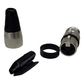 Estão disponíveis como opcionais capas e anéis coloridos, para melhor identificação do conector. Características Tipo: conector XLR de linha Conectores: Femea Acabamento externo em zinco Conectores com encaixe para solda Sistema de prensa retenção do cabo Montagem rápida sem chave de fenda Dimensão A x L x P : 8,2 x 1,9 x 1,9cm Peso: 0,05kg