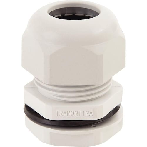 O conector prensa-cabo 1.1/4 polegada Tramontina em termoplástico cinza com bucha é a escolha ideal para elevar o nível dos projetos elétricos e garantir maior segurança. Produzido em termoplástico, ele conta com IP67 e rosca BSP tipo gás. Escolha Tramontina e aumente a qualidade das suas instalações!
