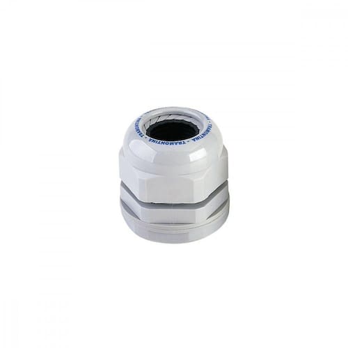 Produzido em termoplástico com rosca padrão BSP tipo gás. Pode ser utilizado para vedação das entradas de cabos elétricos em caixas ou em outros aparelhos. Possui uma bucha cônica de aperto e vedação para a acomodação do cabo elétrico. Diâmetro da bucha: 5 mm a 10 mm.