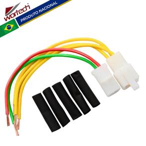 -Dados Técnicos: -Instalação: É necessário soldar os cabos -Conector: Em Nylon de alta qualidade com trava -Terminais: Terminais metálicos estanhados (cor prata) -Chicote: Cabos de alta temperatura -Acabamento: termo retrátil para um melhor acabamento das emendas