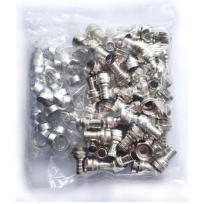 Conector para cabo coaxial Rg6, pacote com 200 peças. Indicado para utilização com cabos coaxiais Rg6, É feito de latão usinado e possui tratamento superficial bicromatizado. Este tratamento superficial aumenta a durabilidade da conexão e melhora a resistência à intempéries, O conector possui ótima relação custo/benefício para utilização em instalações prediais e residenciais, Acompanha anel de crimpagem, Ideal para Cftv, antenas parabólicas, etc. Características: Marca: Mxt Quantidade: 200 peças Tamanho: RG6 Composição: Zinco Homologação Anatel: 040961908724 Ean: 7899471817209