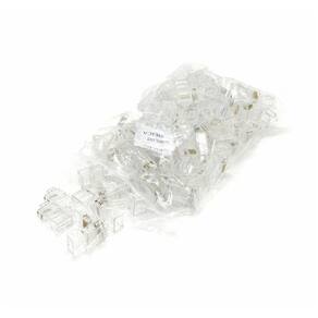 Especificações: Tipo de Conector: RJ45 Quantidade: 100 conectores Tipo de Cabo Utilizado: U/UTP Temperatura de Armazenamento: 40ºC a +70ºC Temperatura de Operação 10ºC a +60ºC Cor: Transparente Corpo em termoplástico de alto impacto (UL 94 V0) Vias de contato produzido em bronze fosforoso com camadas de 2,54µm de níquel e 1,27µm de ouro Atende FCC 68.5 (EMI Interferência Eletromagnética)