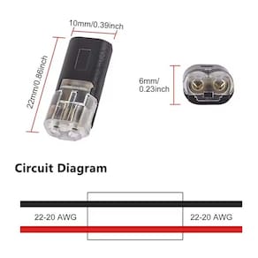 Material: plástico e cobre Cor: preto e transparente Tamanho da embalagem: 20 x 15 x 5 cm Peso da embalagem: 0,50 kg Lista de embalagem: conectores de fio push pull de 100 x 2 pinos Conectores de fio push pull de 2 pinos projetados para conexões elétricas rápidas e seguras, ideais para iluminação LED, cabos de alimentação e projetos de fiação de baixa tensão. O design de encaixe sem casca permite a inserção direta do fio sem decapagem, melhorando a eficiência da instalação e reduzindo significativamente o tempo de fiação. A estrutura de travamento de rosca dupla garante uma conexão firme e estável, evitando o afrouxamento e aumentando a confiabilidade do contato elétrico. Feito com metal condutor de alta precisão e caixa isolada para fornecer transmissão de corrente estável e maior proteção de segurança. Adequado para aplicações elétricas domésticas, automotivas e de bricolage, oferecendo solução de conexão reutilizável e removível para manutenção conveniente.