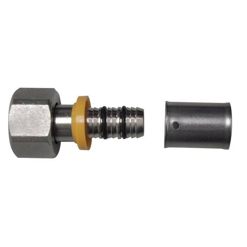 Conexões em latão niquelado. Duplo anel de vedação em borracha nitrílica. Capa de prensagem em aço inoxidável. Crimpagem perfil U. Conexões para transporte de GLP e GN Teste de estanqueidade por amostragem por 10 segundos a 6 bar Alta resistência a corrosão e oxidação. Dimensões do produto: 2,5 x 2,5 x 4,4 cm Cor: Prata Rosca móvel: 1/2'' Peso: 50g Marca: Não Informado Ean: 7891222218723