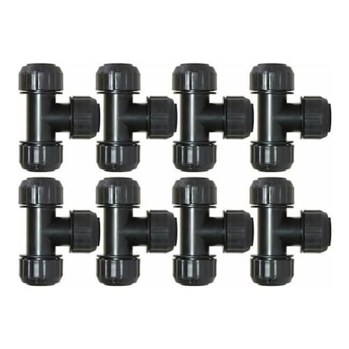 Conexão Te Com Rosca Para Mangueiras Santeno 8 Unidades Cor: Preto São conexões duráveis que foram fabricadas especialmente para serem utilizadas com as mangueiras Santeno, o que garante a eficiência e versatilidade do sistema de irrigação.