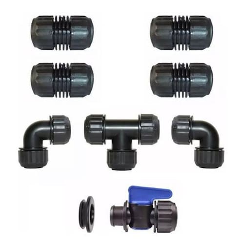 Conexões Para Mangueira De Irrigação Santeno 9 Peças Cor: Preto ATENÇÃO Exclusivo para uso em mangueiras Santeno de polegada