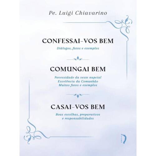 Reúnem-se aqui, em edição única, os três pequenos livros catequéticos do padre italiano Luigi Chiavarino, que recebeu seu hábito religioso das mãos de São João Bosco. Confessai-vos bem, Comungai bem e Casai-vos bem foram escritos os três com a mesma estrutura de perguntas e respostas entre mestre e discípulo, mesclando-se de forma leve e didática a exposição da doutrina a respeito de cada um dos sacramentos em questão — Confissão, Comunhão e Matrimônio — com exemplos de condutas a serem imitadas ou evitadas.