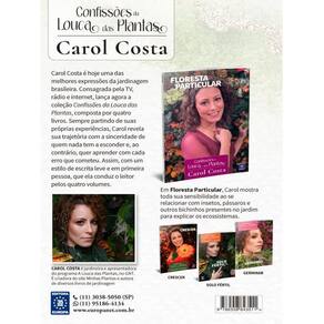 Em Floresta Particular, Carol mostra toda sua sensibilidade ao se relacionar com insetos, pássaros e outros bichinhos presentes no jardim para explicar os ecossistemas. Carol Costa é hoje uma das melhores expressões da jardinagem brasileira. Consagrada pela TV, rádio e internet, lança agora a coleção Confissões da Louca das Plantas, composta por quatro livros. Sempre partindo de suas próprias experiências, Carol revela sua trajetória com a sinceridade de quem nada tem a esconder e, ao contrário, quer aprender com cada erro que cometeu. Assim, com um estilo de escrita leve e em primeira pessoa, que ela conduz o leitor pelos quatro volumes.