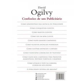 Escrito por David Ogilvy, um dos publicitários mais bem-sucedidos do mundo e um gênio criativo, Confissões de um publicitário volta às livrarias em edição revista reunindo conselhos valiosos e úteis para alcançar o sucesso no mundo da comunicação e do marketing. David Ogilvy abriu a própria agência de publicidade em 1948 e nela trabalhou por quarenta anos. Em Confissões de um publicitário , livro que revolucionou o mercado da publicidade e propaganda nos anos 1960, Ogilvy utiliza sua experiência em variadas profissões e na administração da agência que fundou para estabelecer os fundamentos para o sucesso na criação de grandes campanhas, na conquista e manutenção de clientes e na arte de comandar uma agência rumo à liderança. Considerado o pai da publicidade moderna, Ogilvy expõe neste livro os fundamentos que o tornaram uma referência na área e escreve cartas revelando desde o processo de criação de ideias, passando por dicas para escrever textos de divulgação e conselhos sobre posicionamento com clientes e adversários. Nada escapa ao autor, que compartilha a melhor maneira de se portar como um bom publicitário e como consumidor e é categórico ao afirmar a importância das pesquisas de mercado no desenvolvimento de campanhas. Trazendo as ideias pioneiras de Ogilvy e sua filosofia inspiradora, este não é apenas um livro sobre publicidade, mas uma verdadeira aula sobre gestão de pessoas e ética no mercado de trabalho. Longe de estar datado, o ousado e inteligente Confissões de um publicitário contém o método que se mostra aplicável ainda nos dias de hoje, tanto para conquistar quanto para manter consumidores fiéis. Um dos legados mais sólidos e permanentes para o ofício e para o negócio da comunicação e do marketing.