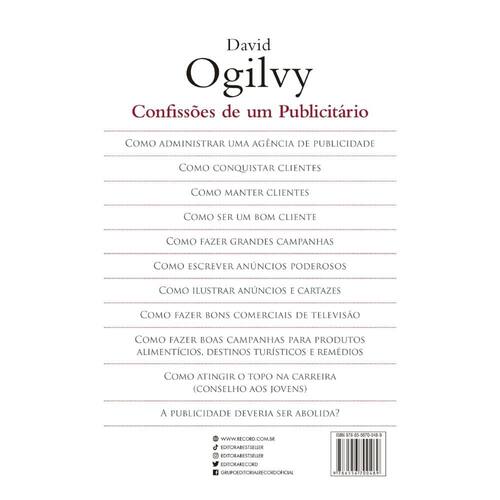 David Ogilvy abriu a própria agência de publicidade em 1948 e nela trabalhou por quarenta anos. Em Confissões de um publicitário, livro que revolucionou o mercado da publicidade e propaganda nos anos 1960, Ogilvy utiliza sua experiência em variadas profissões e na administração da agência que fundou para estabelecer os fundamentos para o sucesso na criação de grandes campanhas, na conquista e manutenção de clientes e na arte de comandar uma agência rumo à liderança.