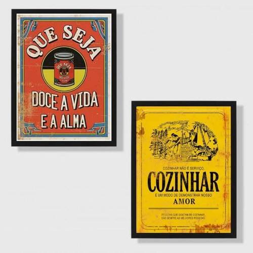 Conj. 2 Quadros Coz. Verm/Amarelo 45X34Cm Vidro/Mold. Pret