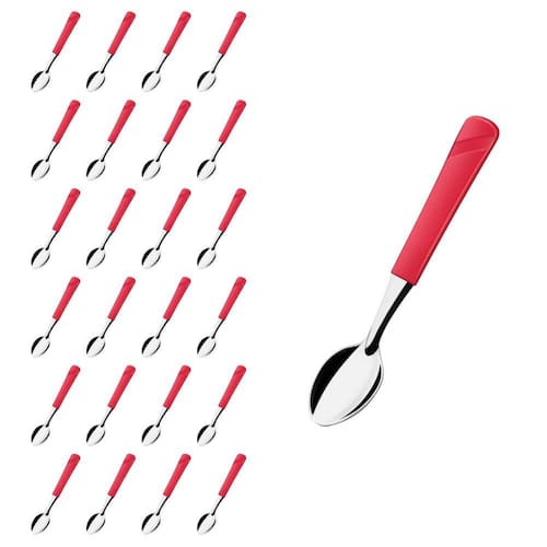 Conj 24 Colher de Chá Linha Luna Vermelho Aço Inox Buffet
