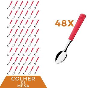 Conj 48 Colher de Chá Linha Luna Vermelho Aço Inox Buffet