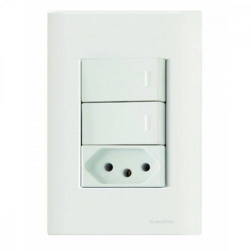 O Conjunto 4x2 com 2 Interruptores Simples 10 A 250 V e 1 Tomada 2P+T 10 A 250 V Tramontina Giz Branco é a escolha ideal para ligar equipamentos elétricos e iluminar seus ambientes. Produzido em termoplástico, ele possui sistema modular com gradual ajuste entre a placa e o suporte, característica que garante um acabamento perfeito da placa com a parede. Sua regulagem e fixação é ainda muito fácil, pois conta com furo oblongo e também furos para a fixação em parede de madeira. Com a Tramontina, você garante os melhores itens para sua casa e todos os seus espaços!
